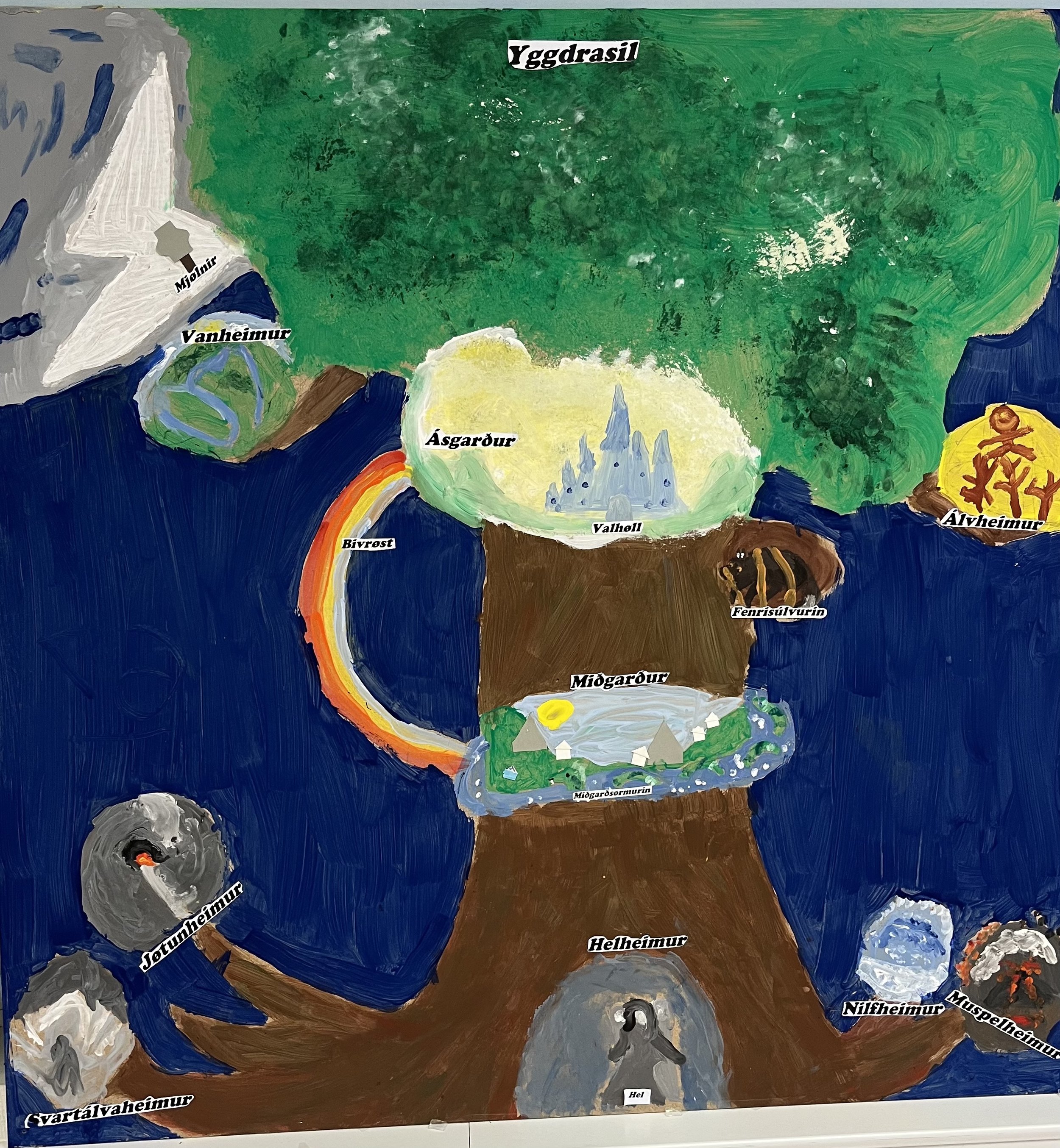 Evnisvika um Norrønu gudalæruna er júst farin aftur um bak. Vit hava kannað og funnið út av, hvørja trúgv forfedrar okkara høvdu. Óðin, Tórur, Frigg, Loki, Baldur, Hel, Fenrisúlvurin, Miðgarðsormurin, Yggdrasil eru millum tey, vit hava lært um. Vit hava gjørt leikir, myndir og frásagnir um gudarnar. Vit endaðu sjálvandi við at vísa alt, vit høvdu fingið burturúr, fyri foreldurum, ommum, abbum, systkjum o.ø. myndir