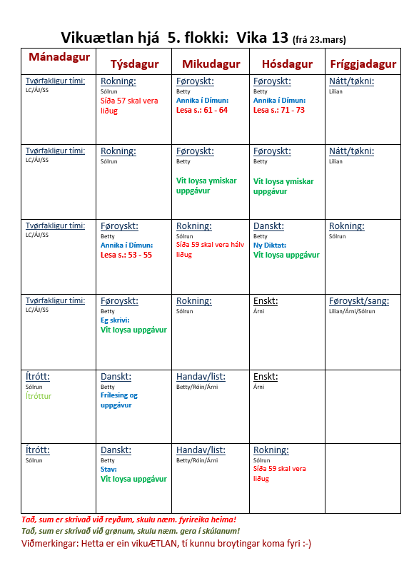 Vikuætlan 5.fl